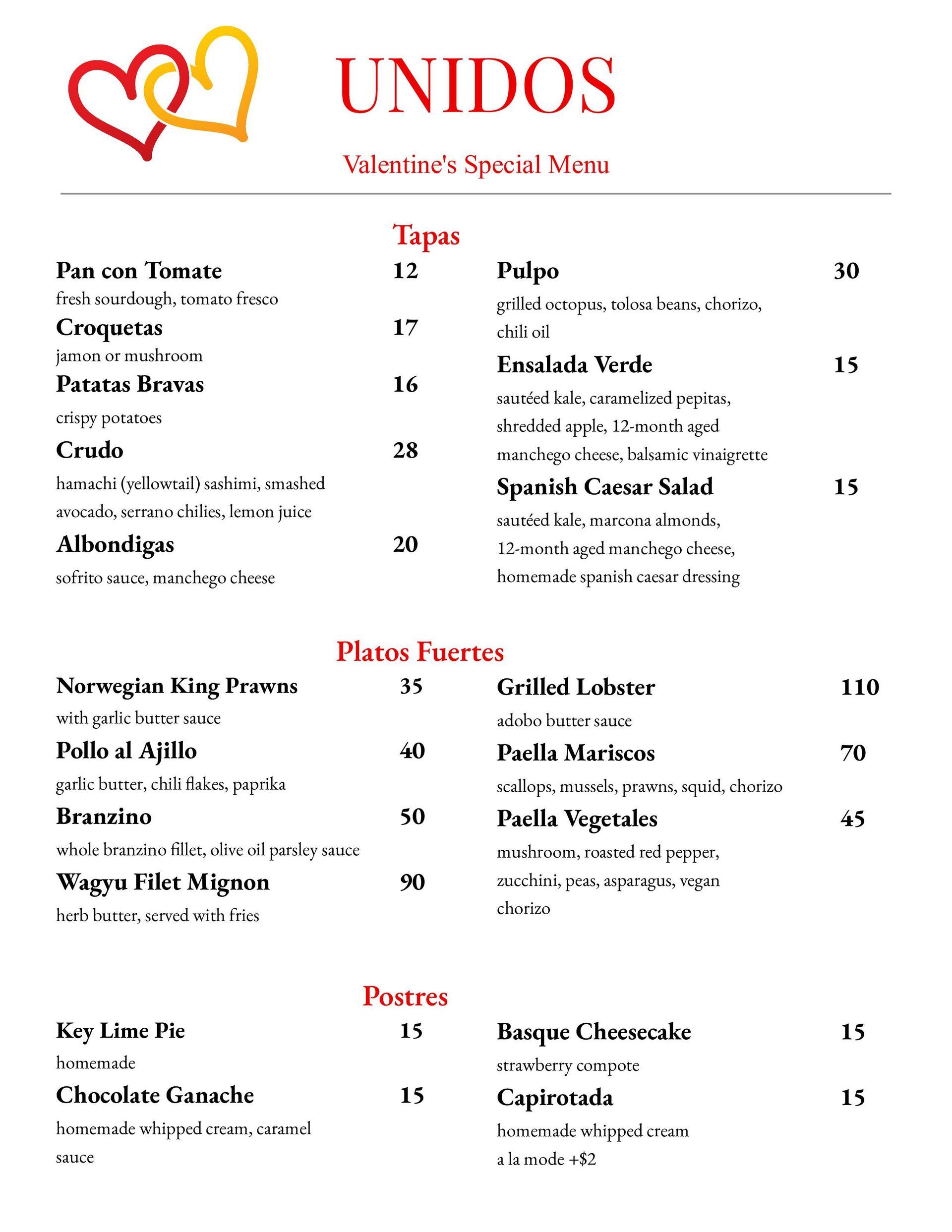 Valentines Day Menu